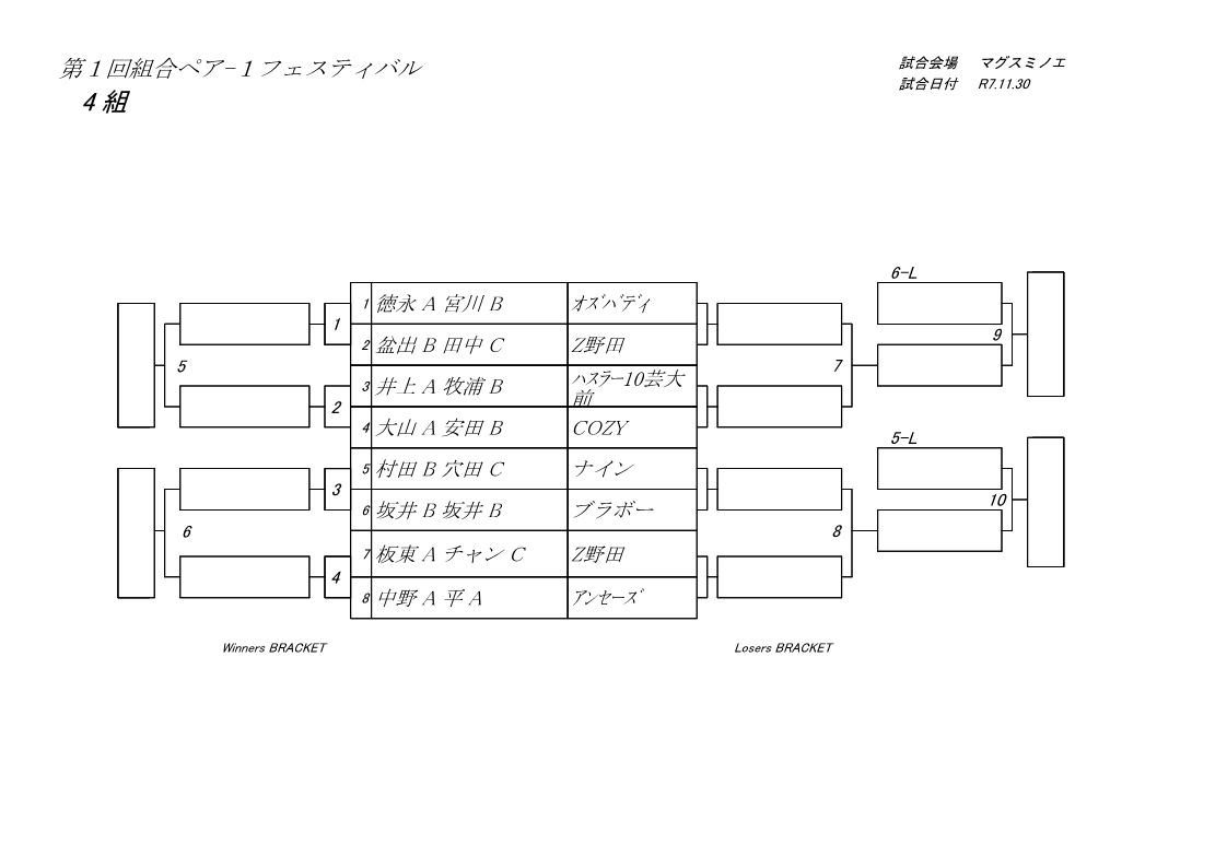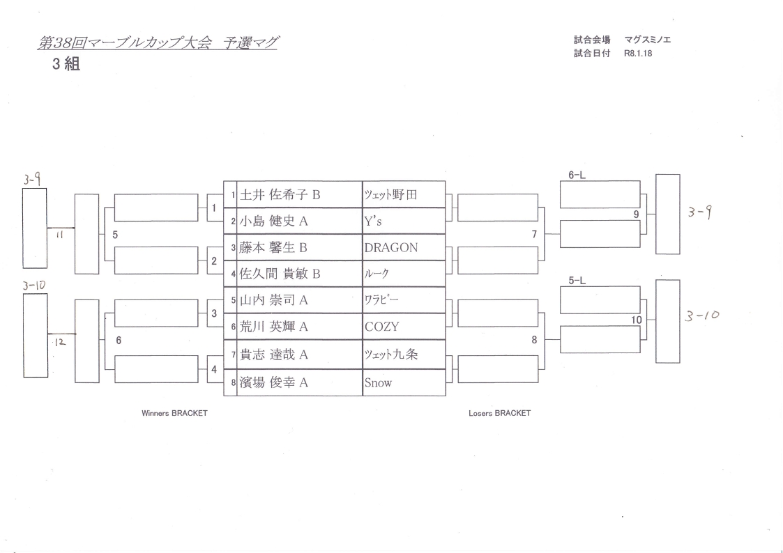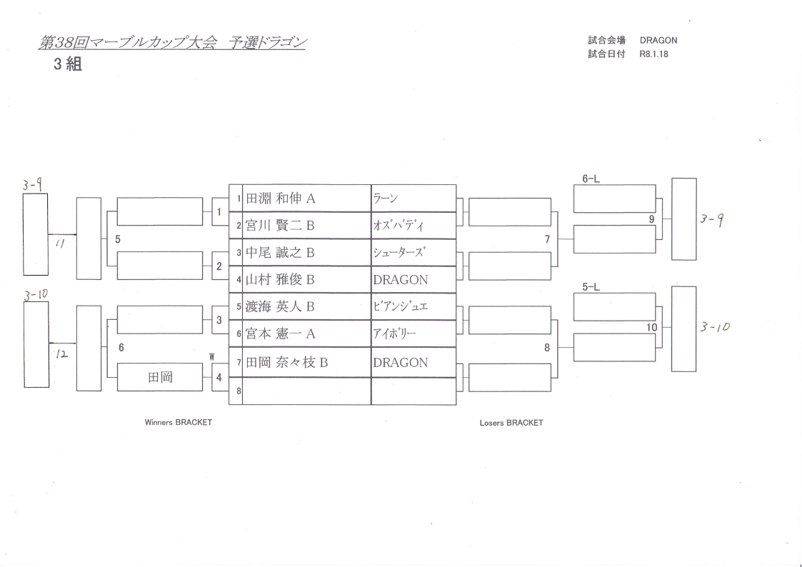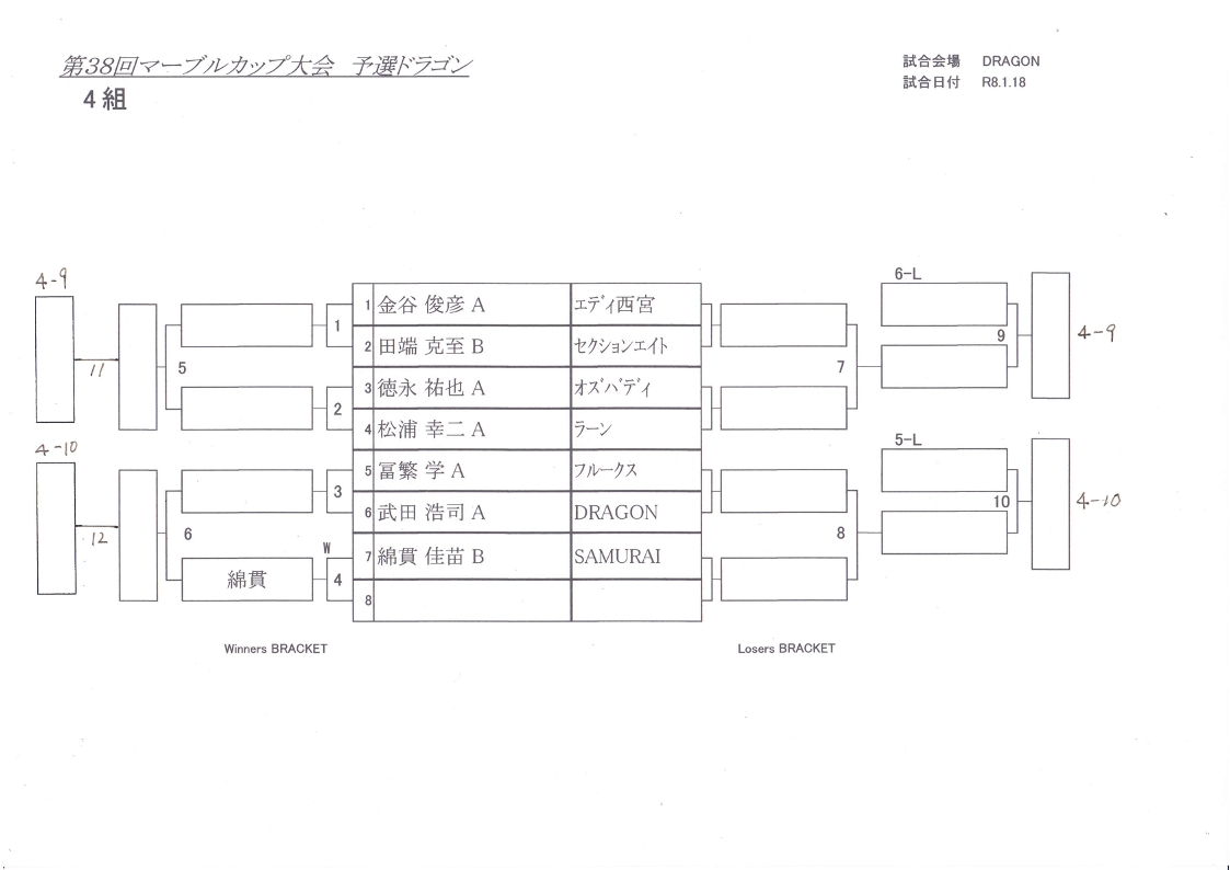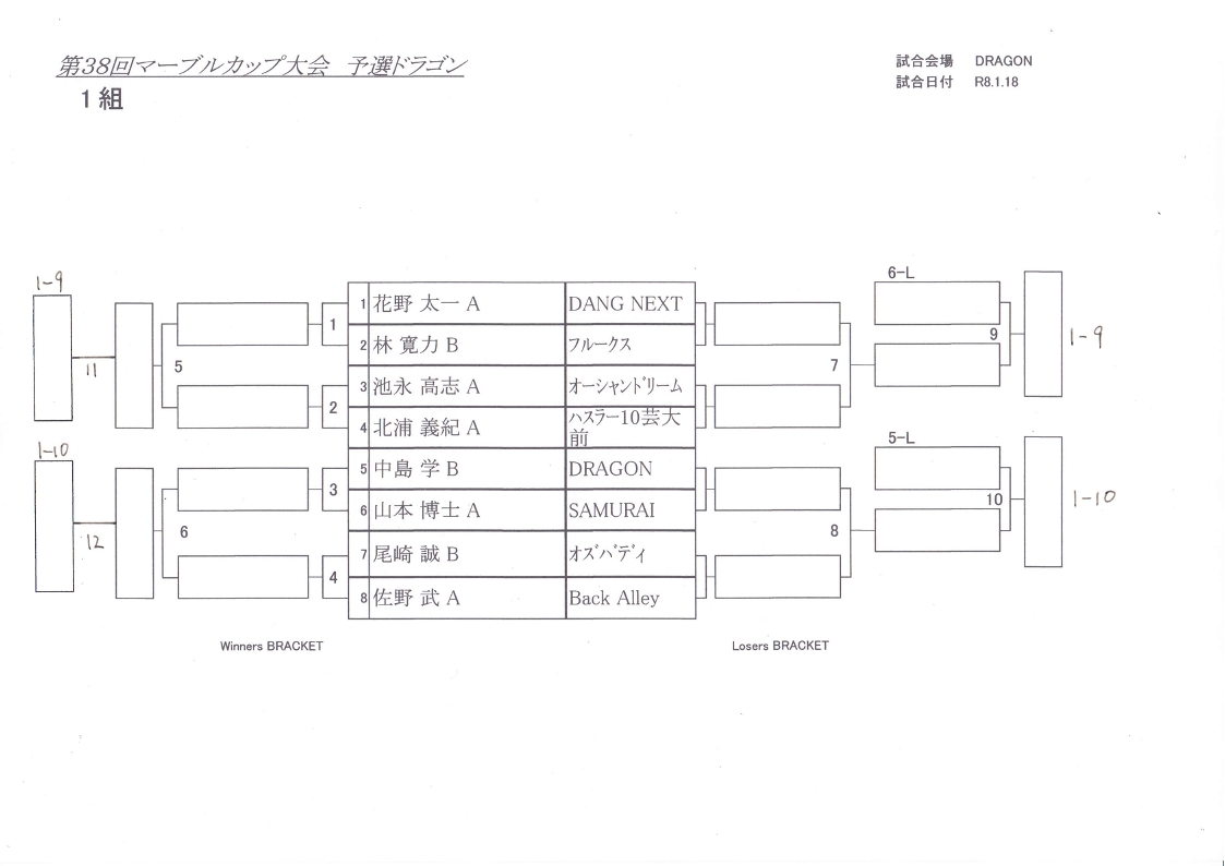 田岡B・慈幸A(DORAGON)、瀬戸山A・横田C(Z野田)