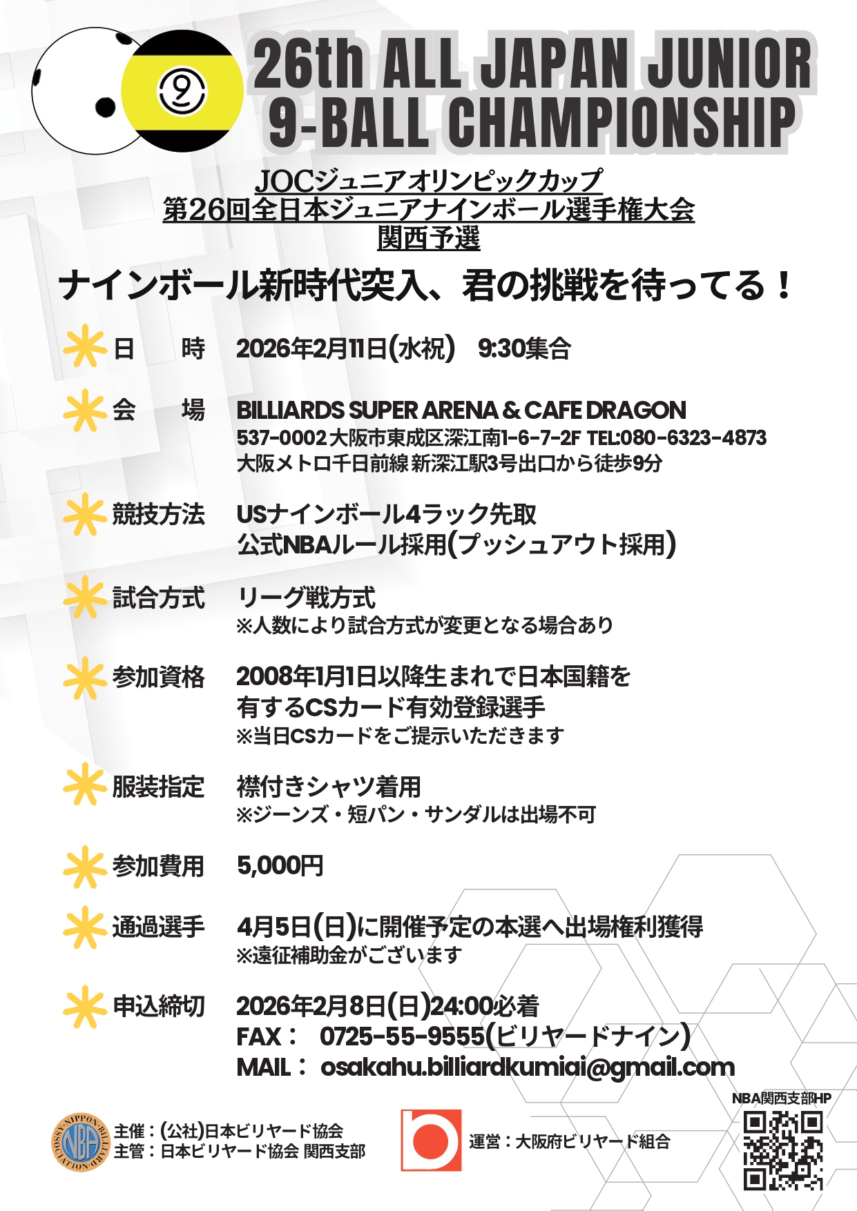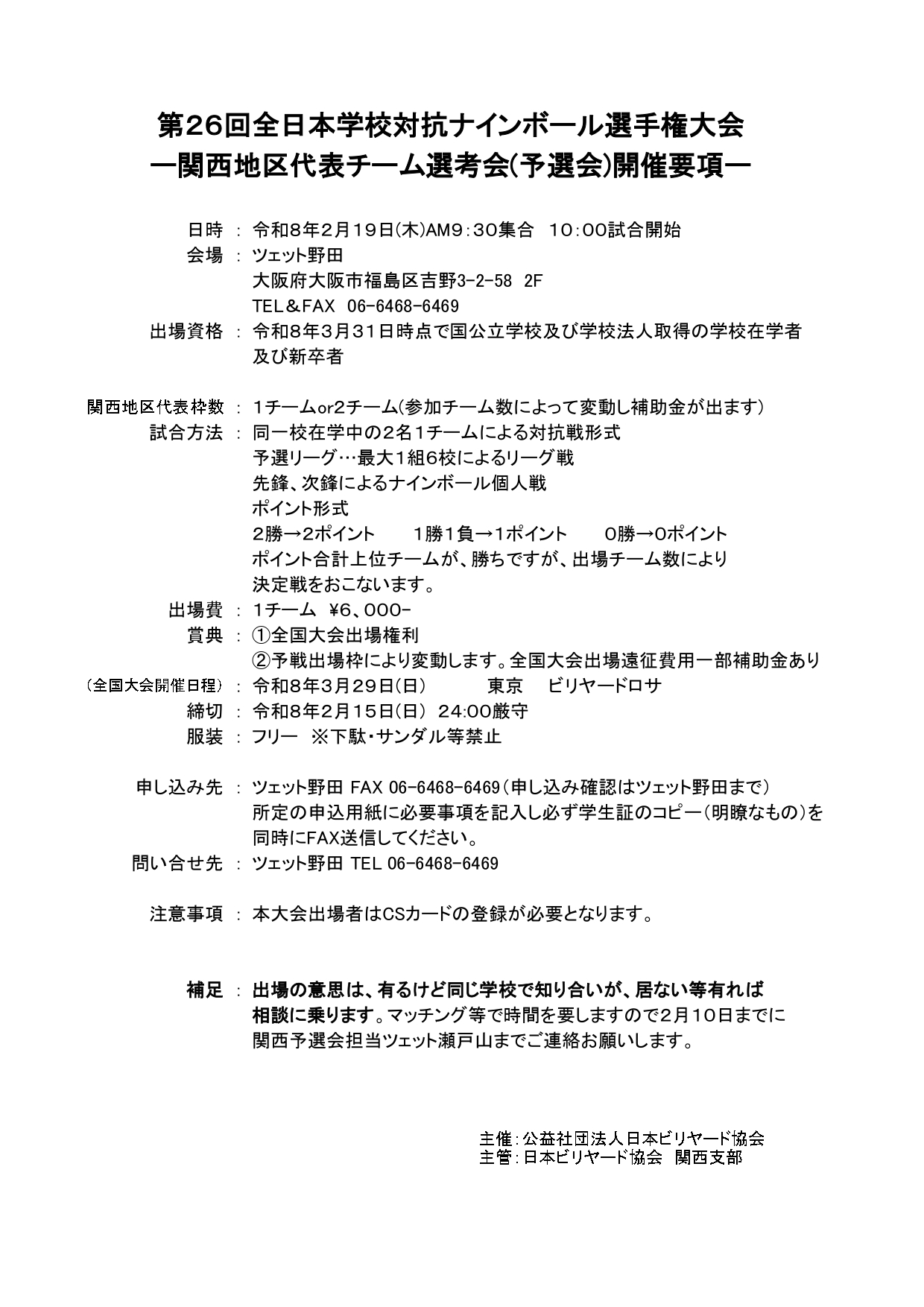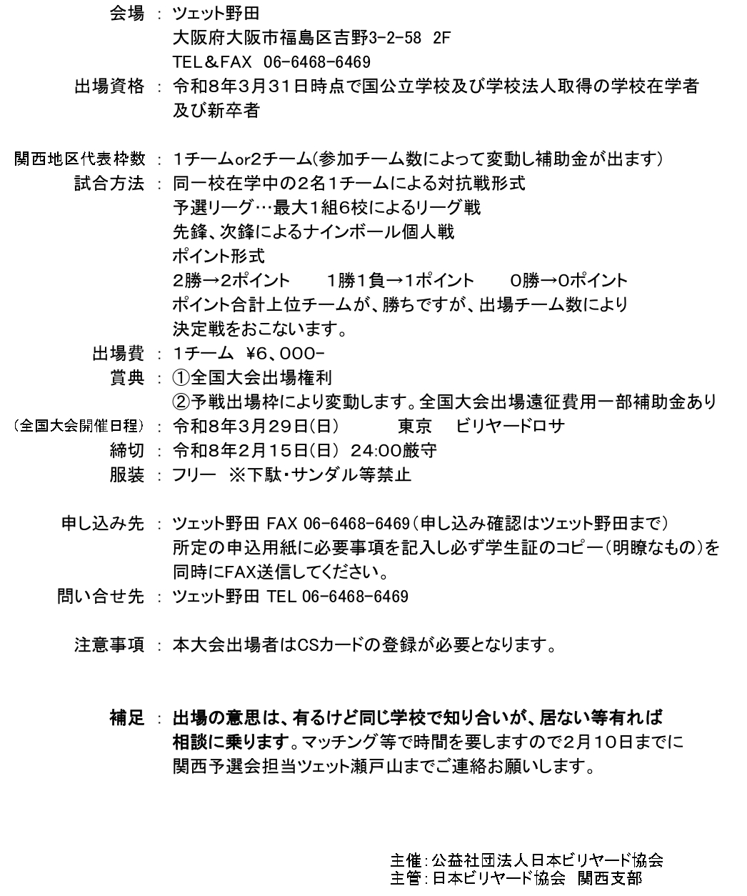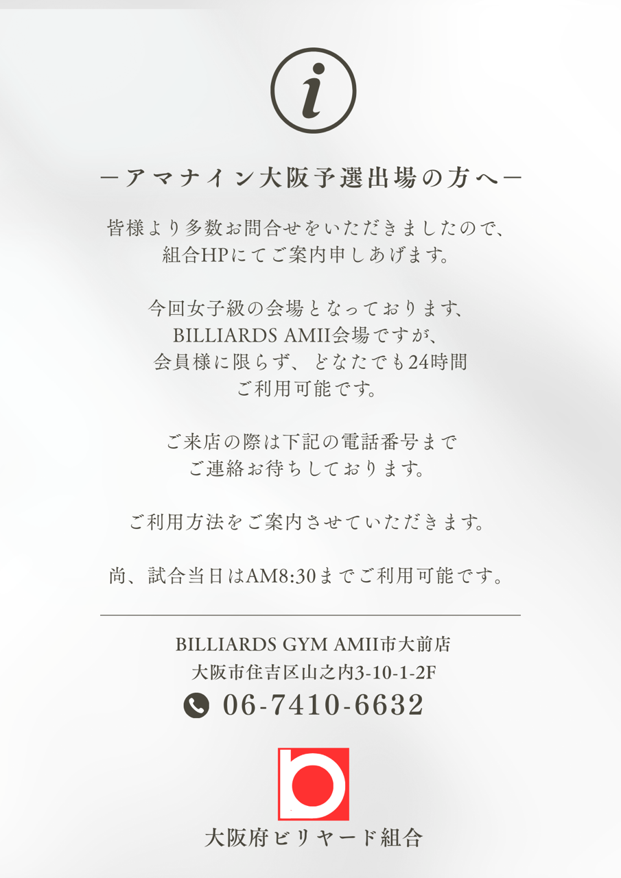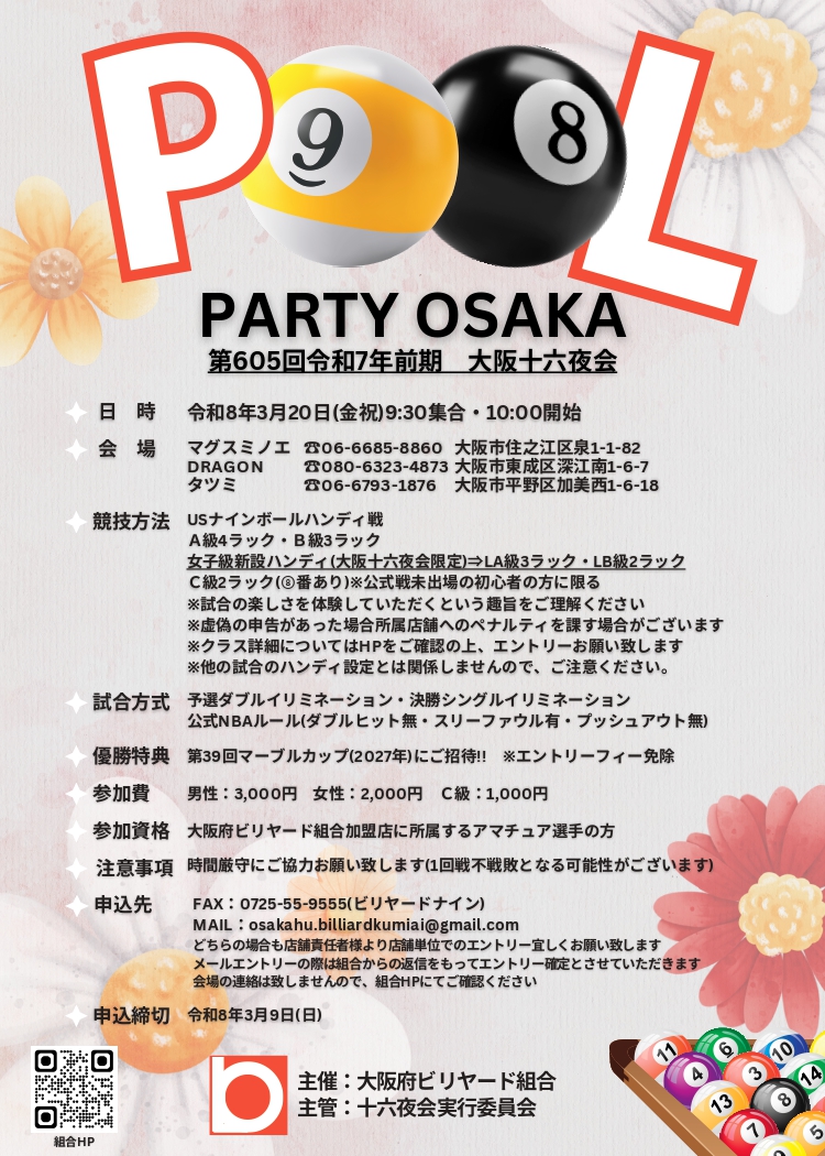 大阪府ビリヤード組合E-mail : osakahu.billiardkumiai@gmail.com