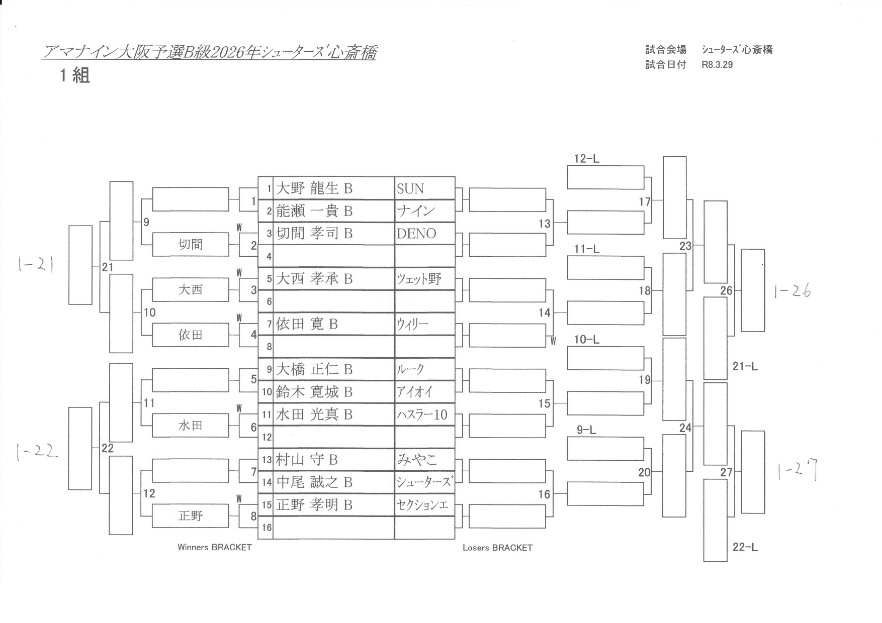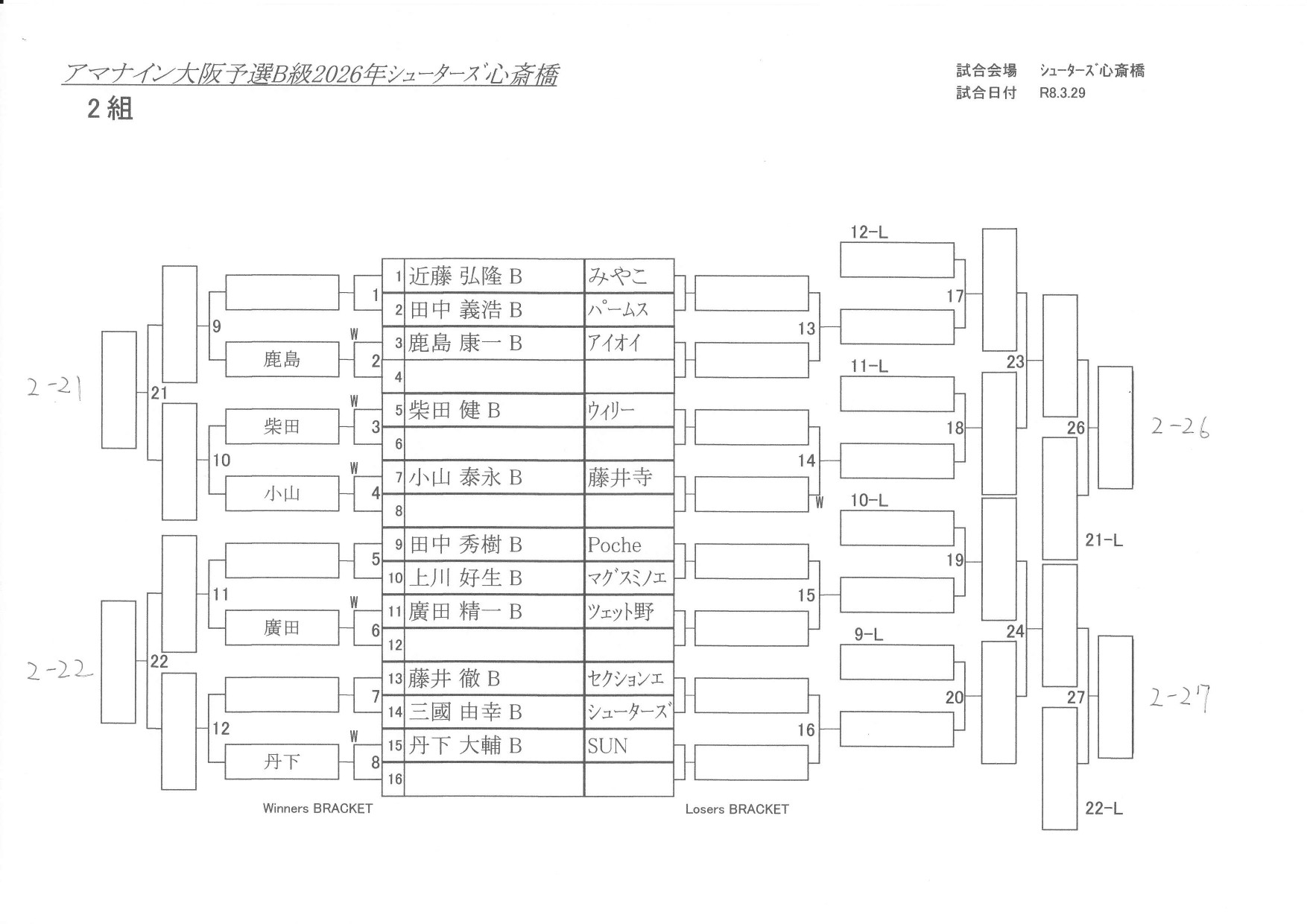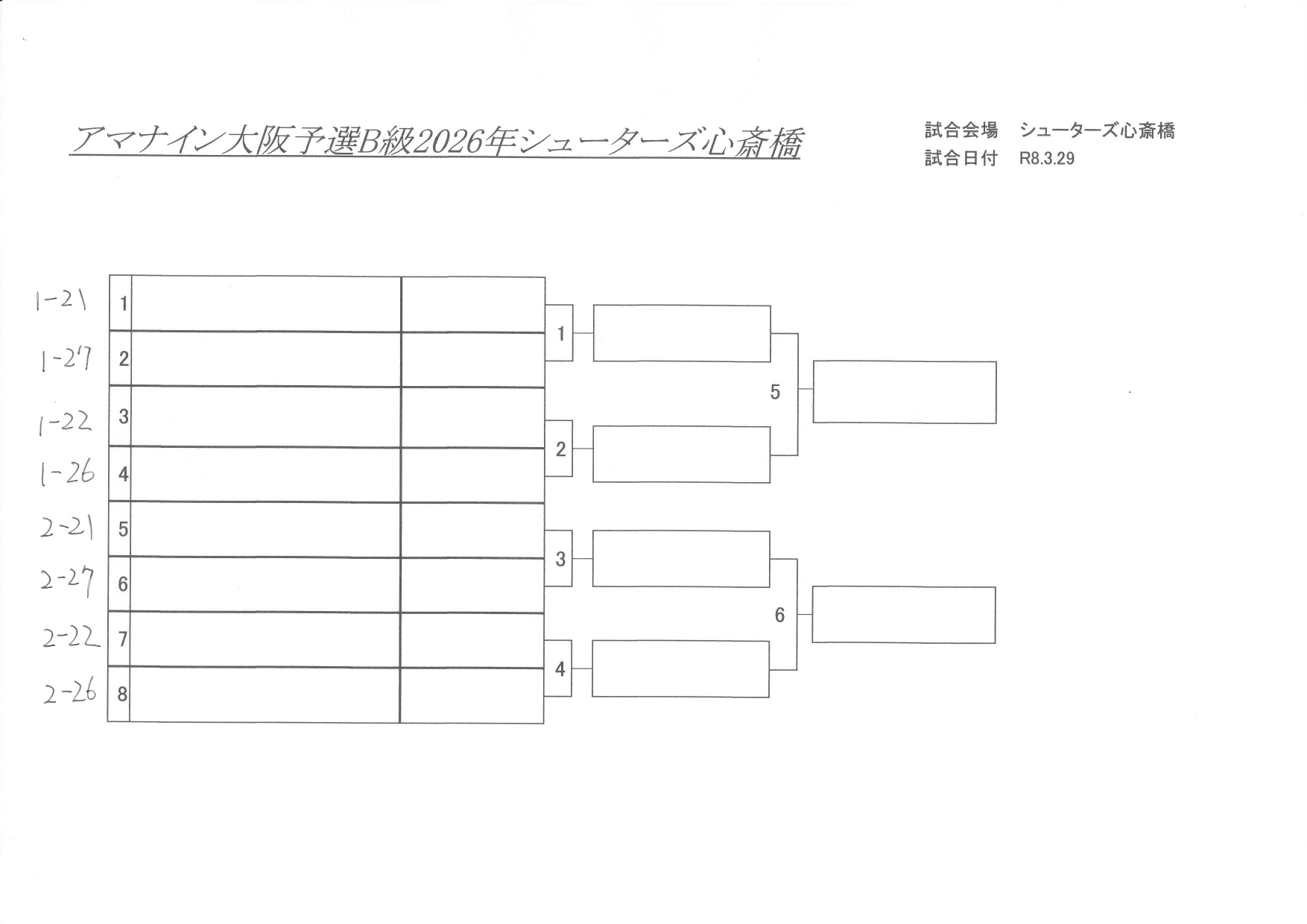 B級の会場にAMIIとシューターズ心斎橋も使用します。各自会場をお間違えの無いようご確認ください。