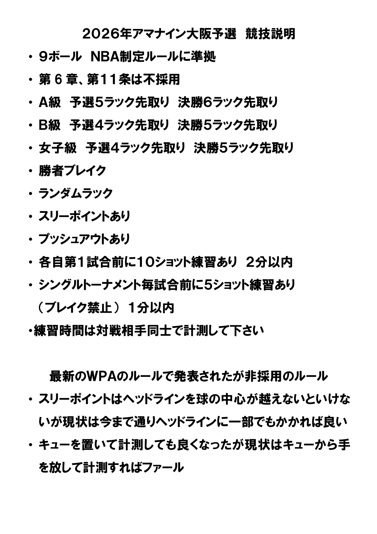 2026年アマナイン大阪予選 競技説明・競技上の注意
